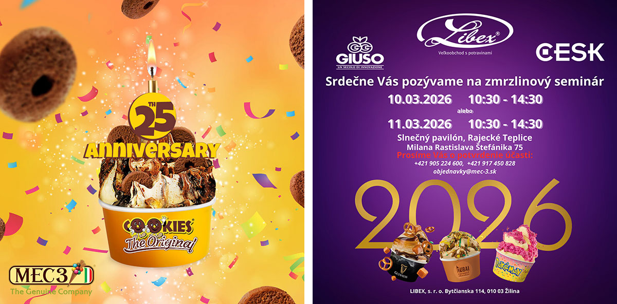 Spoločnosť LIBEX, s.r.o. sa stala výhradným distribútorom zmrzlinových surovín značky MEC3 pre Slovensko. Talianska firma MEC3 je jedna z najúspešnejších firiem pôsobiacich v oblasti zmrzlinového priemyslu. Vďaka kvalite svojich výrobkov a neustálej kreativite pri vývoji noviniek sa firma MEC3 presadila už vo viac ako 120 krajinách sveta.